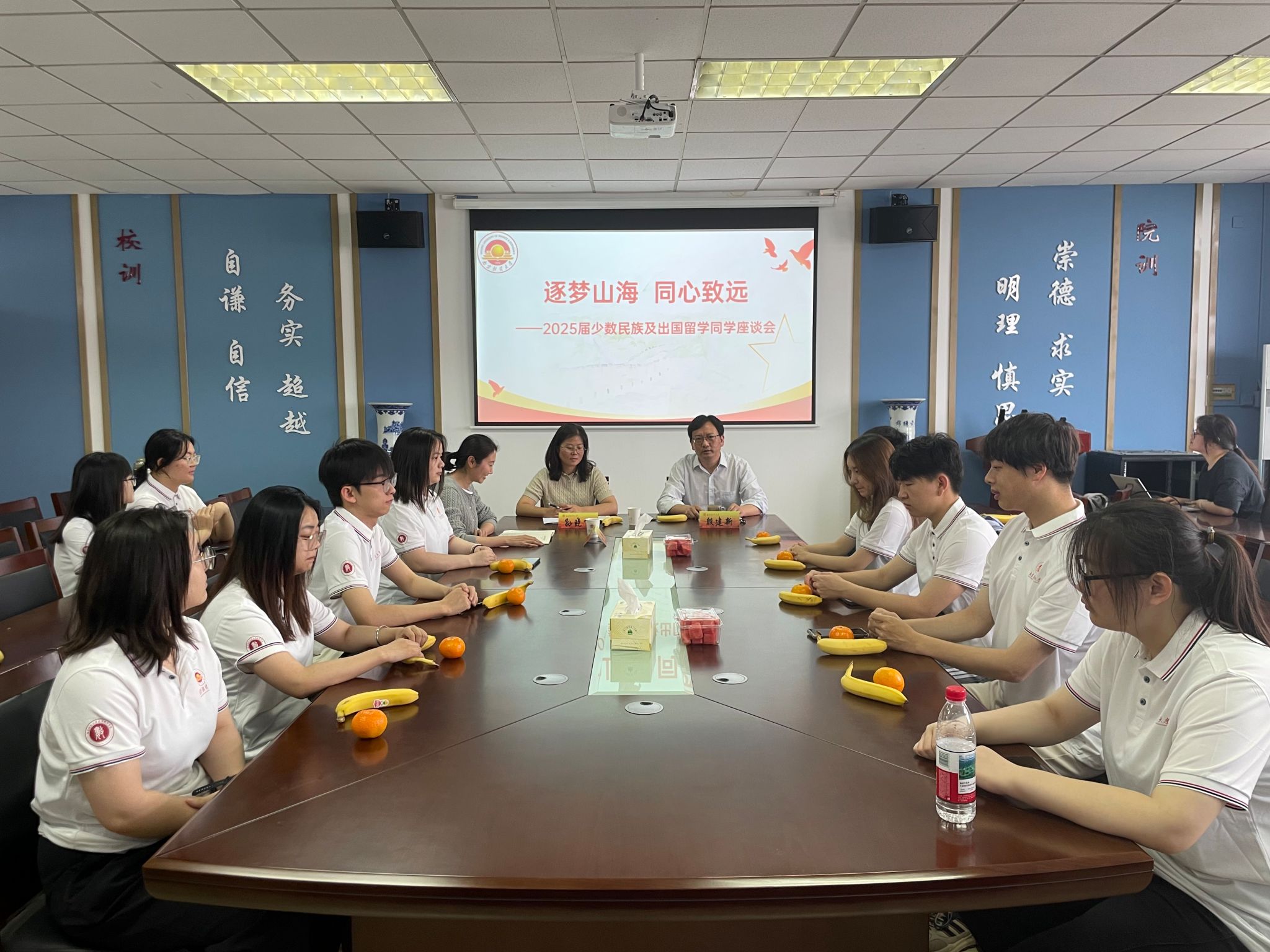在仙林校区德业楼508会议室开展系列师生座谈。在“逐梦青春,砥砺前行”师生座谈会中,殷建新书记和孙晓飞副书记为家庭经济困难的毕业生发放了暖心礼包,鼓励同学们带着“爱”出发,砥砺前行。老师们主动询问同学们在学习和生活中遇到的困难,听取毕业生们对学校、学院建设发展的建议。在“筑梦山海,同心致远”毕业班少数民族及出国留学同学座谈会上,殷书记指出要将爱国情怀融入血脉,自觉遵守法律法规,鼓励少数民族同学与出国留学同学积极参与多元文化交流,传播中华优秀传统文化。