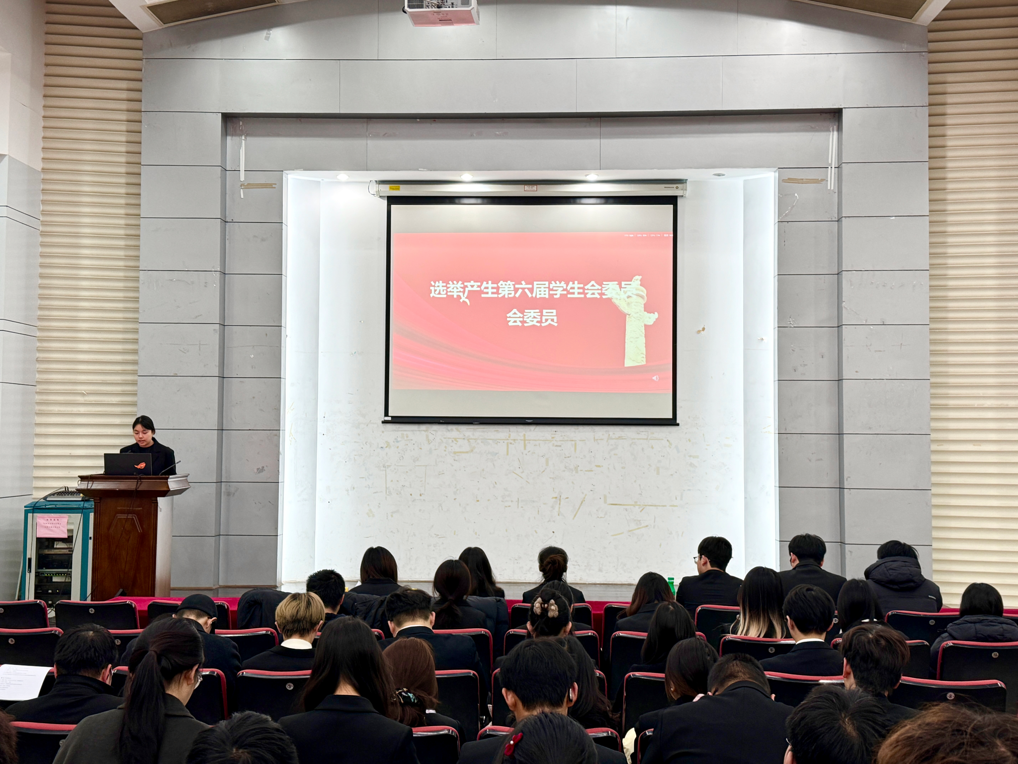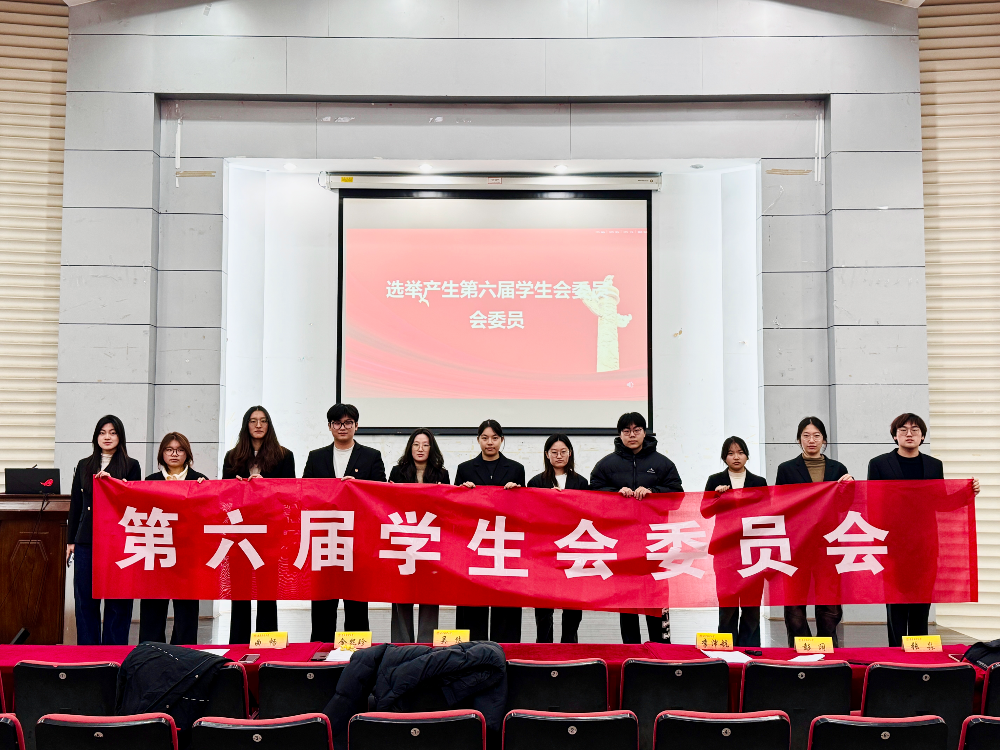 学生会新一届委员会委员。大会审议通过委员候选人名单,经全体代表投票,曲畅、严张岩、李琼皓、吴悠、杨蕊菀、金熙珍、胡可可、贺雨荷、侯笑雯、董思涵、李硕涵11位同学当选第六届学生会委员会委员。
