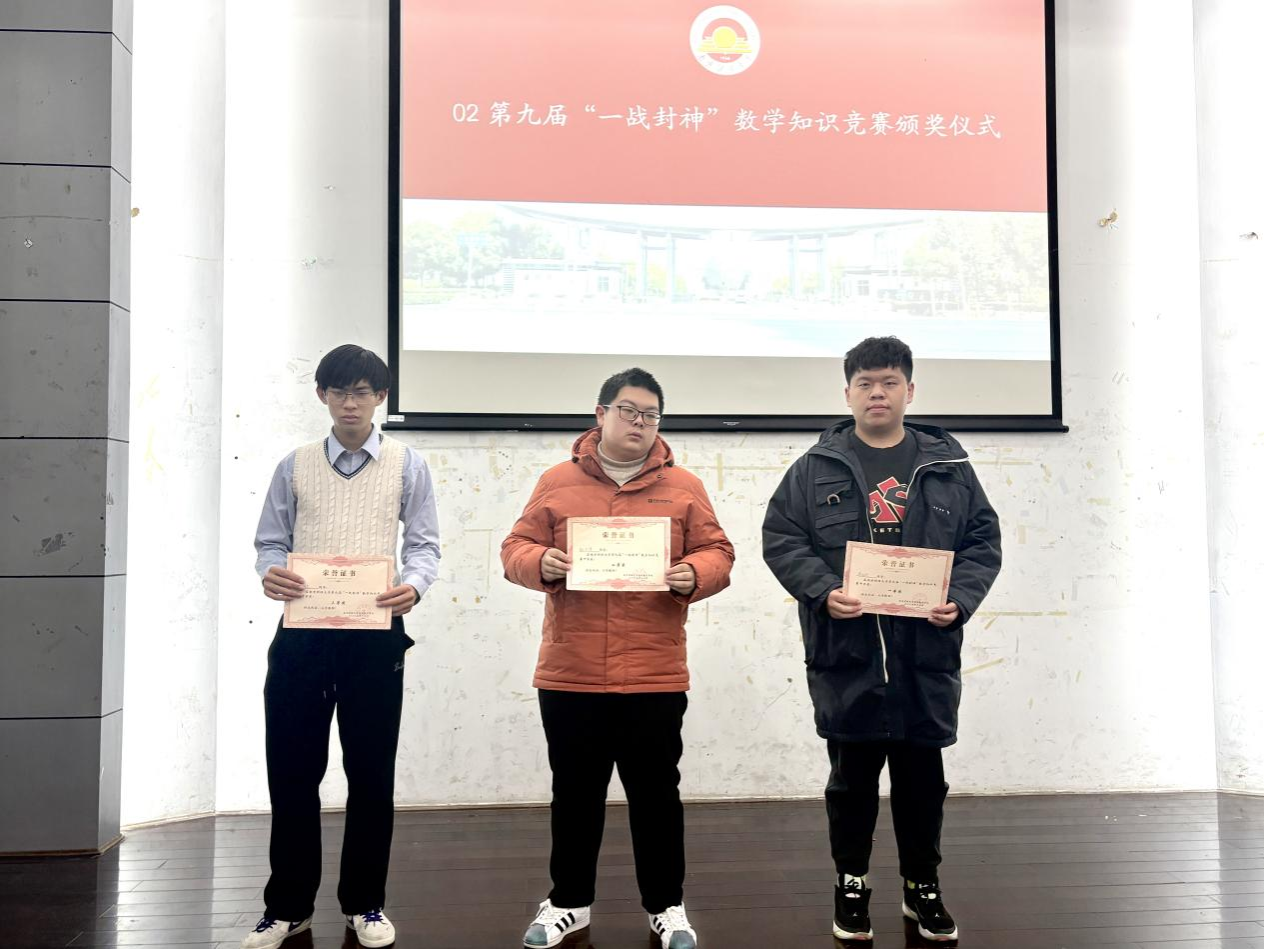 讲座后,进行本届数学文化节各项活动的颁奖环节。获奖选手依次上台领奖,获奖代表杨王志博同学、程竹越同学分别结合“一战封神”数学知识竞赛和“与数偕行,勇闯天涯”活动分享活动体验和心得体会,号召同学们在数学学习中提升兴趣、锻炼思维。