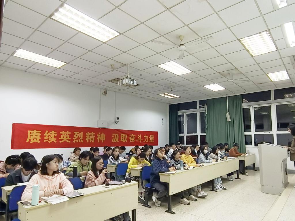 团委邀请团课小老师金融2001班谈烨同学在仙林校区德业楼102教室、104教室和106教室分三场为全体2021级新生作主题为“赓续英烈精神,汲取奋斗力量”的讲座。