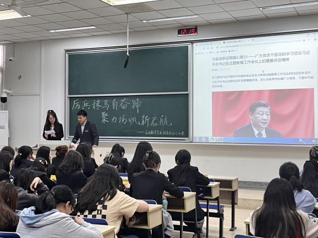 4月3日,学习贯彻习近平新时代中国特色社会主义思想主题教育工作会议在北京召开。习近平总书记在此次会议中强调要深刻认识开展这次主题教育的重大意义,全面准确把握主题教育的目标要求以及切实加强对主题教育的领导。公开课上,两位主持人领学了习近平总书记在主题教育工作会议上的重要讲话精神,启发在场的同学对主题教育的重大意义和具体要求进行深入思考,进一步明确用党的创新理论武装头脑、指导实践、推动工作。主持人带领大家共同学习了习近平总书记给中国农业大学科技小院的学生的回信精神,习近平总书记在信中表达了对当代青年的殷切希望,同学们纷纷表示要将历史使命牢记心间,将时代责任扛在肩头,发奋学习、笃行不怠,用实际行动为国家富强和民族振兴贡献青春力量。