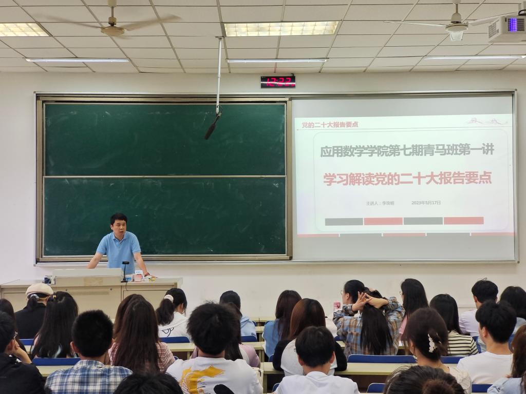 在仙林校区德业楼116教室举办第七期青马班第一讲专题讲座,学院团委书记李攻明老师为同学们作了题为“学习解读党的二十大报告要点”的专题讲座,第七期青马班全体成员参加。讲座由院团委学术部施佳慧同学主持。