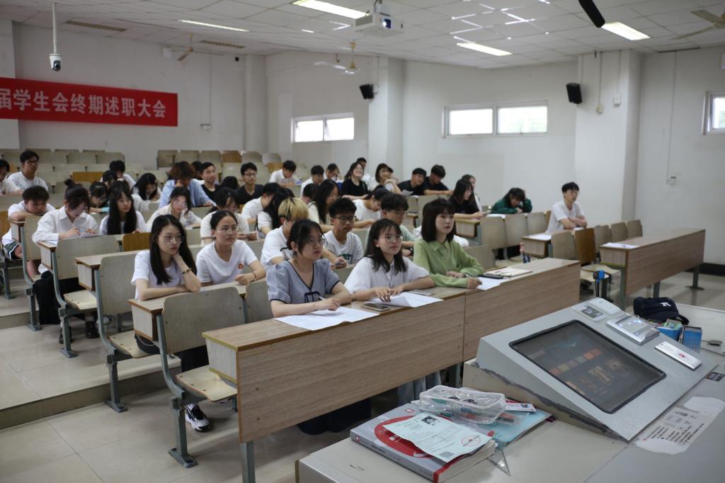 学生会在仙林校区博远楼104教室召开第十九届学生会终期述职大会。学生会主席团成员、各中心负责人与全体志愿者参加了此次会议。本次会议由综合事务中心志愿者佘德仪主持。