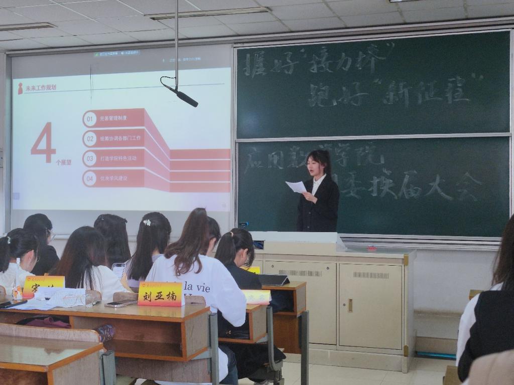 在仙林校区博远楼204教室召开“握好‘接力棒’、跑好‘新征程’”团委换届大会。本次换届大会由团委宣传部干事杨一凡主持,团委全体成员参加。