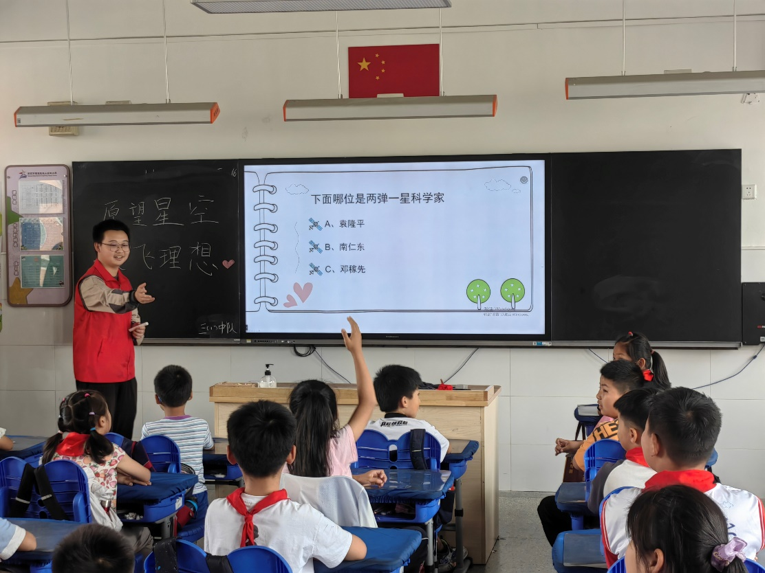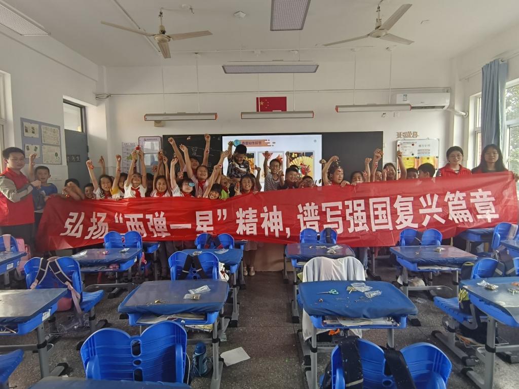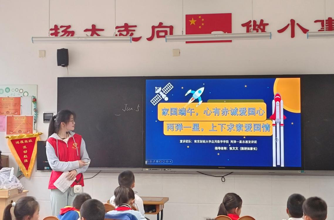“熠星独行,‘核’护万家”暑期“三下乡”社会实践志愿宣讲团分别前往南邮小学、金陵小学、摄山星城小学开展“两弹一星”精神宣讲暨民俗体验活动。学院党总支副书记孙晓飞、办公室主任张文文、团委书记李攻明、全体志愿者以及三所小学部分师生参加宣讲。宣讲由金数2202班张灵凡、钱磊同学主持。