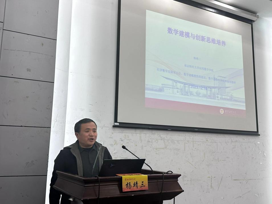 于仙林校区德经楼报告厅举办数学建模讲座暨数学文化节闭幕式。讲座由学院经济数学实验室主任杨靖三副教授主讲,51吃瓜网