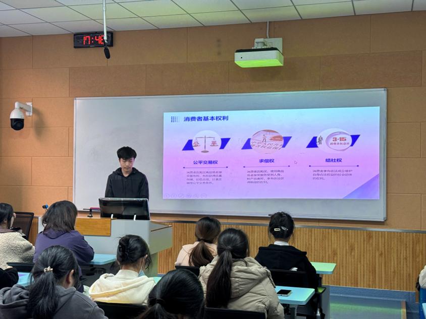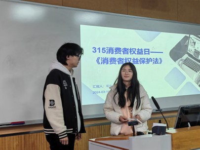 在仙林校区博文楼112教室开展主题为“青春不盲从,维权我先行”的消费者权益日活动。本次活动由院学生会服务维权中心举办,大一、大二年级部分学生参加。
