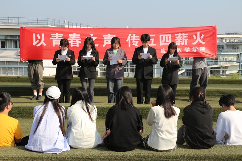 4月26日下午,学院在仙林校区德业楼五楼平台开展了“五四”经典诵读分享活动。本次活动由数学2301班团支部承办,学院部分大一、大二同学参加。