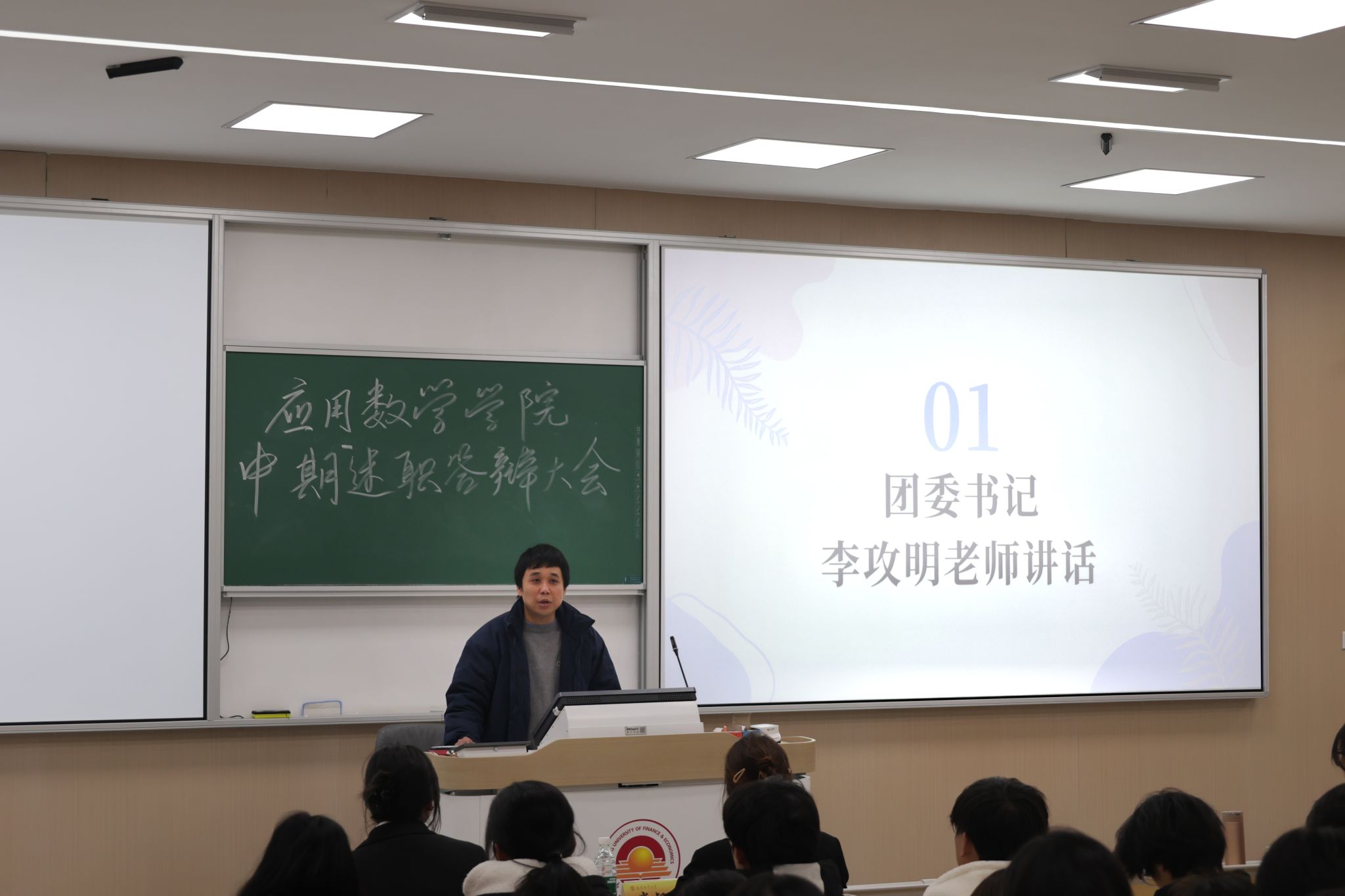 会议开始,院团委书记李攻明老师发表讲话。他全面总结了开学至今学生会各中心的工作情况,对所取得的成绩予以充分肯定,同时也精准地指出工作中存在的不足之处,并就未来工作的开展提出了建设性的指导意见,最后向大家表达了美好祝愿。