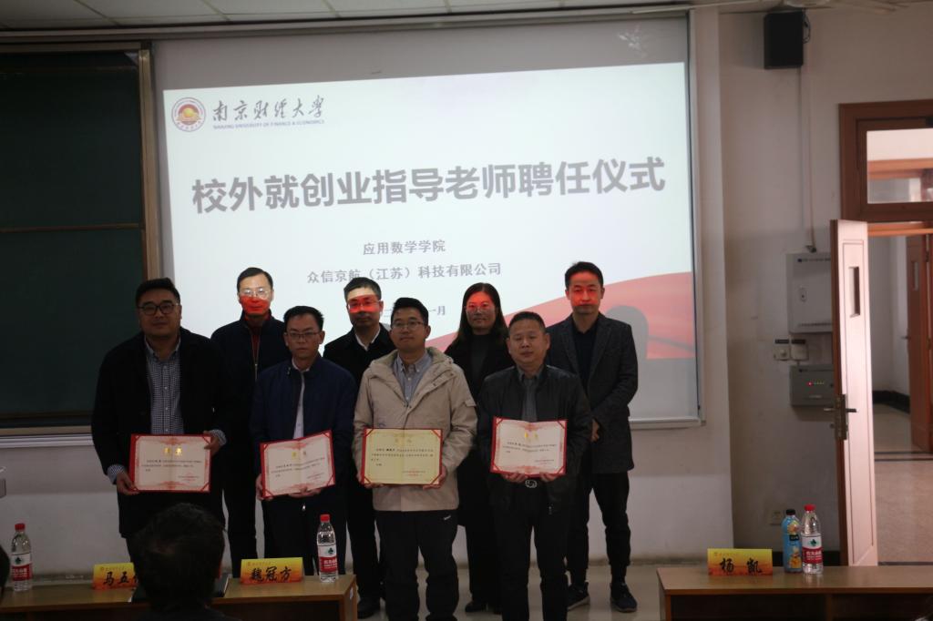 11月16日下午,学院在仙林校区博远楼205教室举行校外就创业指导老师聘任仪式及专题讲座。江西财经大学创新创业教育中心主任纪奥,众信京航(江苏)科技有限公司总经理马五代、副总经理杨凯、副总经理魏冠方,学院副院长(主持工作)方国昌、副院长孙成峰、副院长吴波出席仪式,仪式由院党总支副书记孙晓飞主持,51吃瓜网