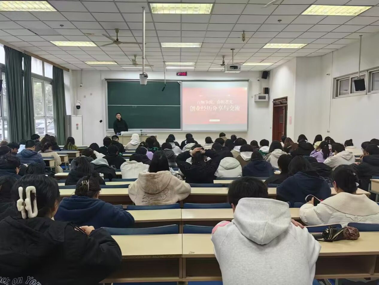 在仙林校区德正楼101教室举办“百舸争流,奋楫者先”创业经历分享与交流讲座。本次讲座特邀学院2007届毕业生、优秀校友南京夸美人才发展有限公司董事长、总经理马江苏分享创业经历。学院2023级全体同学参加讲座。