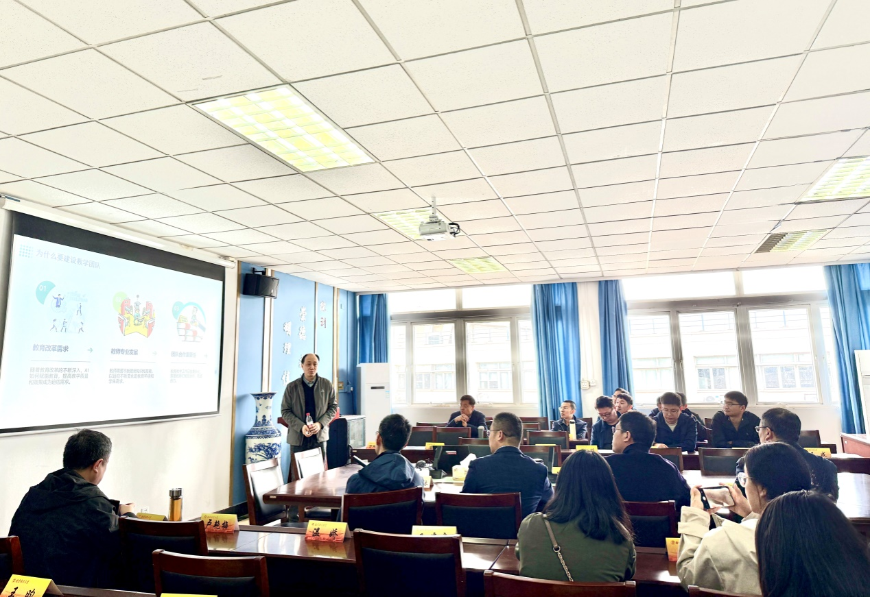 学院邀请到扬州大学数学科学学院党委书记凌智教授作“双轮驱动、分类建设、AI赋能——高校数学教学团队一体化构建与实践”主题讲座。凌智教授围绕“数学课程教学团队建设与分类教学实践”展开深入讲解,系统介绍了教学团队建设的总体思路、分层教学组织架构及分类教学实施框架。他指出,团队建设应坚持“统筹规划、质量监控、资源协调”原则,构建分工明确、协同合作、老中青结合的合理梯队结构,并通过集体备课、教学研讨、听课评课等制度,促进教学经验交流与资源共建共享。