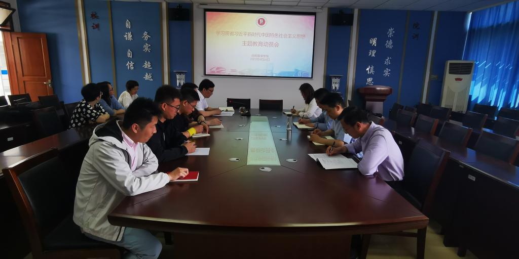 在德业楼508会议室召开学习贯彻习近平新时代中国特色社会主义思想主题教育动员会,贯彻落实党中央、省委部署和学校党委要求,对学院主题教育进行动员部署。学院领导、党支部书记、行政管理人员、辅导员、教职工党员代表参加会议。会议由学院党总支书记殷建新主持。