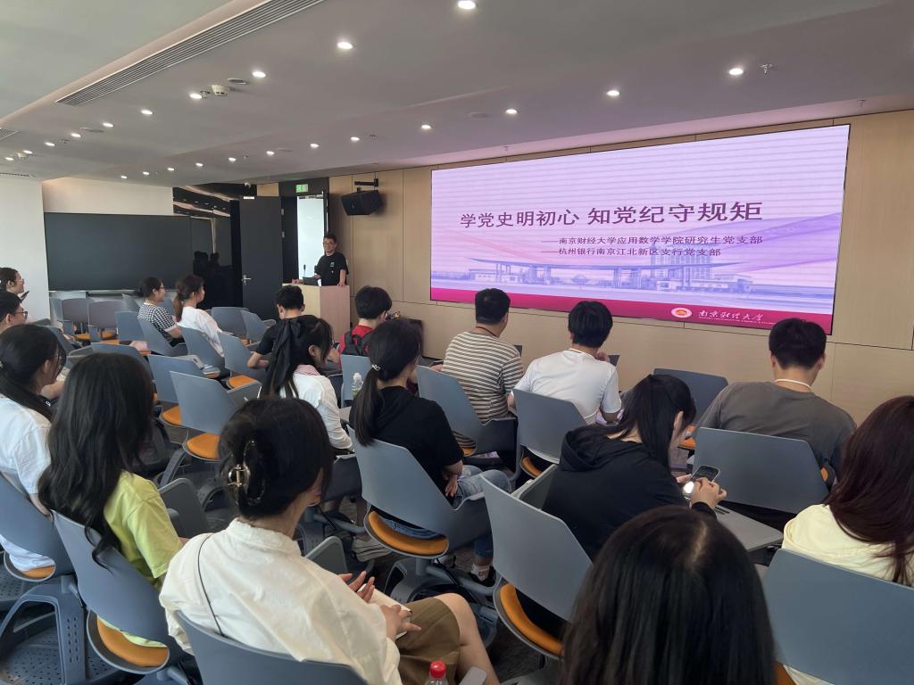 为深入贯彻落实党的二十大精神,加强党纪教育,提高党员党性修养,5月17日,学院研究生党支部联合杭州银行南京江北新区支行党支部开展“学党史明初心,知党纪守规矩”党史学习教育与党纪学习教育。