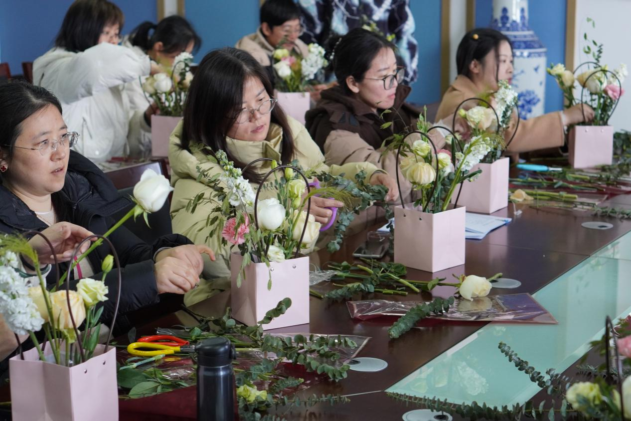 在仙林校区德业楼508会议室举办“暖春三月,花韵女神”主题花艺活动。